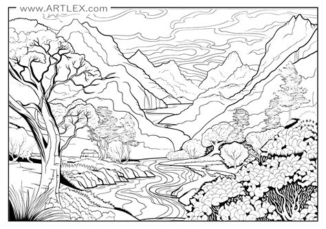 Printable Landscape . Explore the beauty of nature with our free nature coloring pages. Accessing and printing our printable landscape coloring pages is easy and convenient.